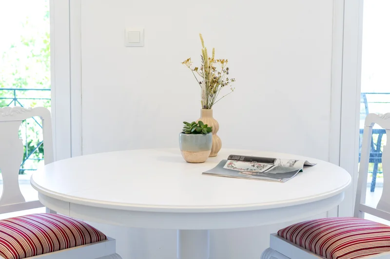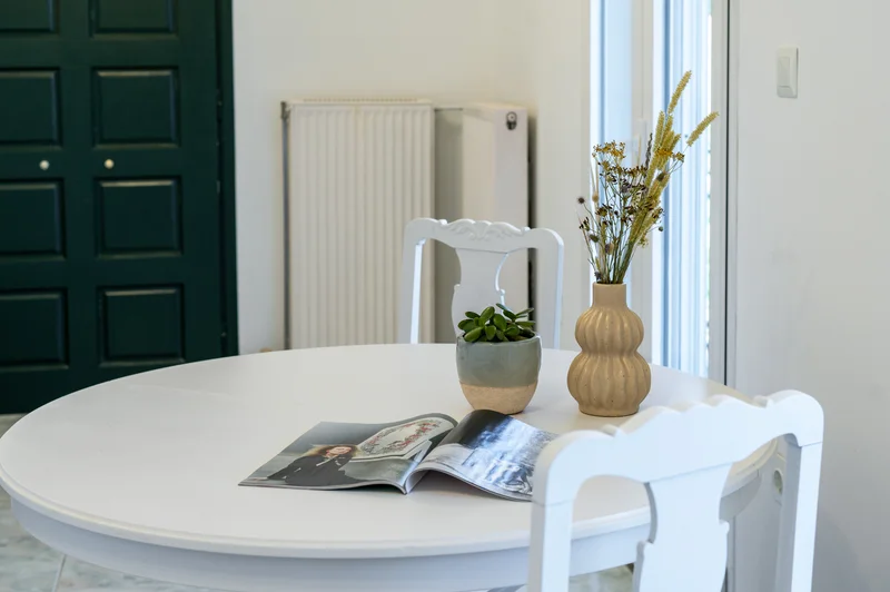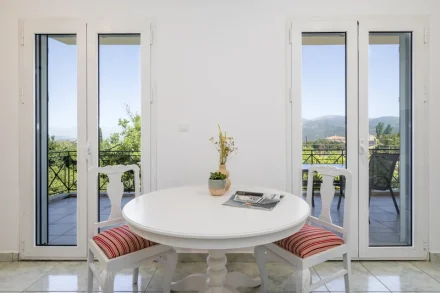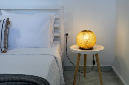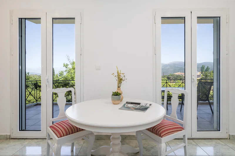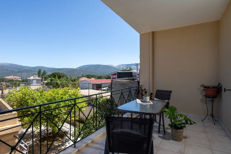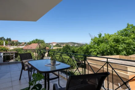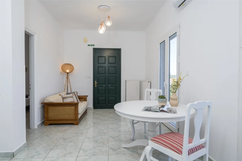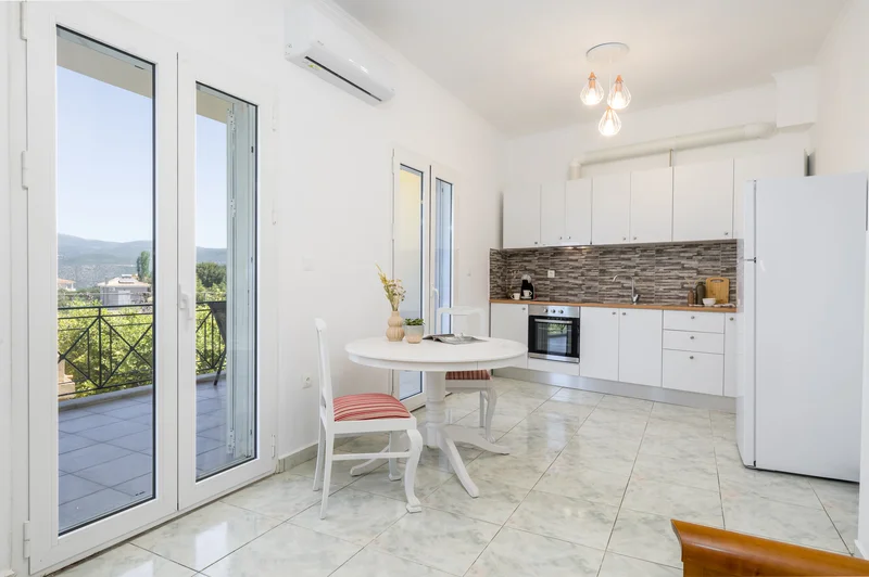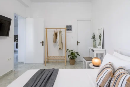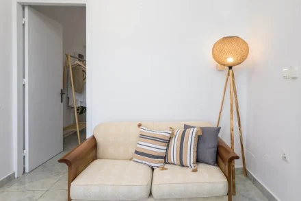 Στην πίσω πλευρά του σπιτιού και στον πρώτο όροφο διατίθεται ένα ακόμα διαμέρισμα 55τ.μ. σε λευκά και γήινα χρώματα. Το διαμέρισμα διαθέτει πλήρως εξοπλισμένη κουζίνα με εστίες, φούρνο και ψυγείο.
