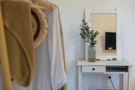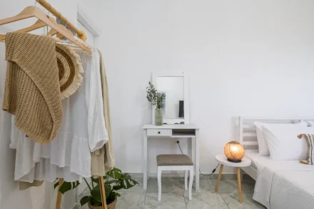 Στην ντουλάπα θα βρείτε κρεμάστρες, ηλεκτρικό σίδερο ρούχων και σιδερώστρα πιστολάκι μαλλιών.