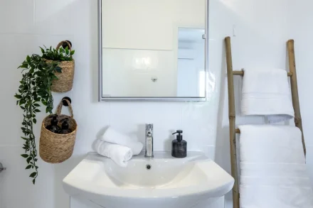 Στο μπάνιο υπάρχουν πεσέτες, αφρόλουτρο, σαμπουάν και σαπούνι χεριών