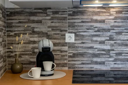Στα ντουλάπια της κουζίνας θα βρείτε τοστιέρα, βραστήρα και είδη σερβιρίσματος (πιάτα, ποτήρια, φλυτζάνια μαχαιροπήρουνα και κατσαρόλες) καθώς και μηχανή παραγωγής εσπρέσο!